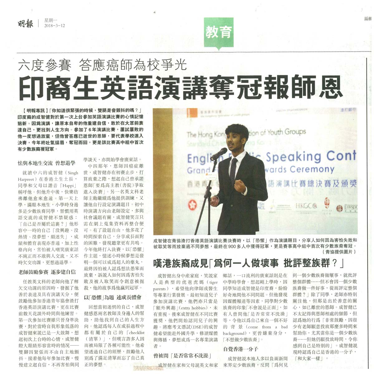 本校學生英語演講奪冠報師恩